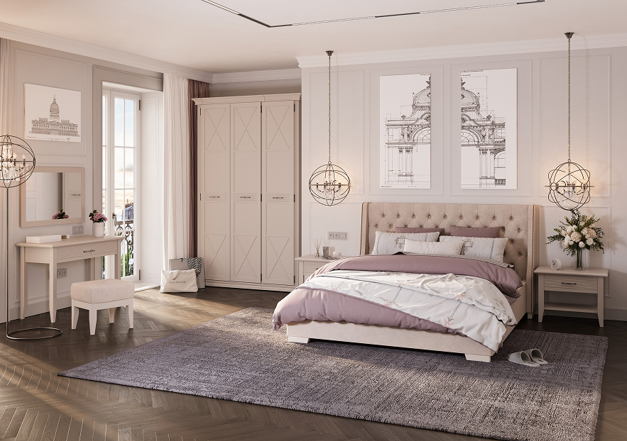 - Для спальни используется крепежная фурнитура и механизмы ведущих производителей. Такая фурнитура позволит мебели прослужить дольше, не требуя частого ремонта. Петли оснащены доводчиками для более плавного закрывания дверей;