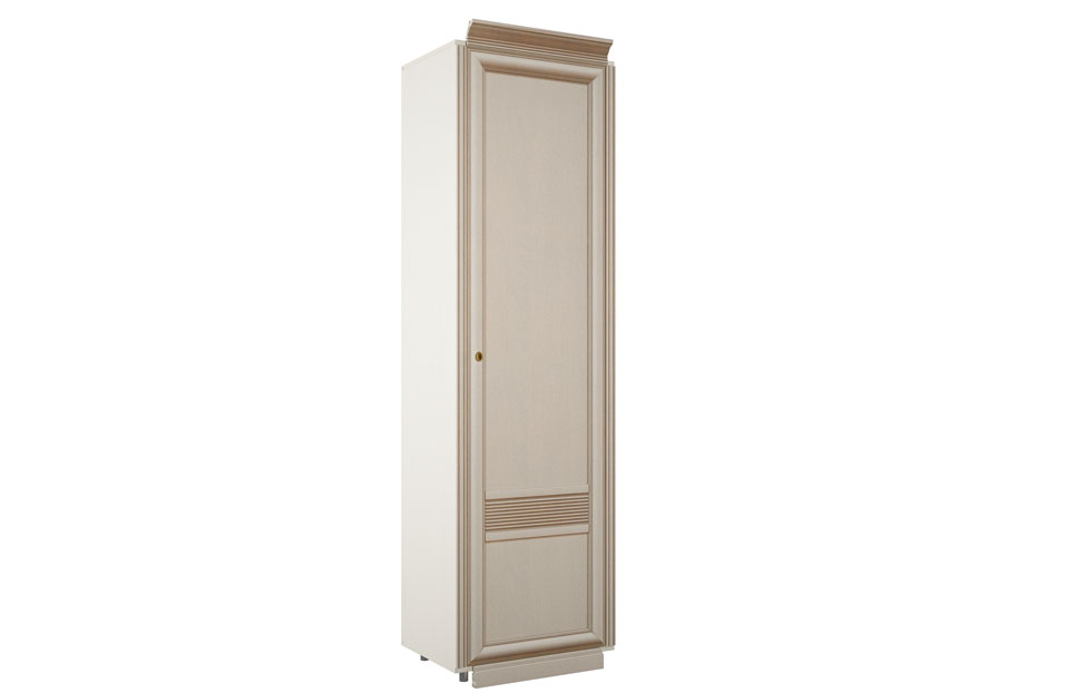 Компактный однодверный шкаф-пенал станет прекрасным решением при выборе мебели для малогабаритного помещения. Модель идеально подойдет для гостиной, спальни или прихожей в стиле классика, неоклассика или модерн. Глухой фасад, выполненный в благородном цвете «Валенсия», украшен филенками и сложной фрезеровкой. Роскошь изделию добавляет внешняя фурнитура в необычном оттенке «античная бронза». Декоративный цоколь скрывает опоры мебели. Регулируемые ножки позволяют нивелировать неровности напольного покрытия.