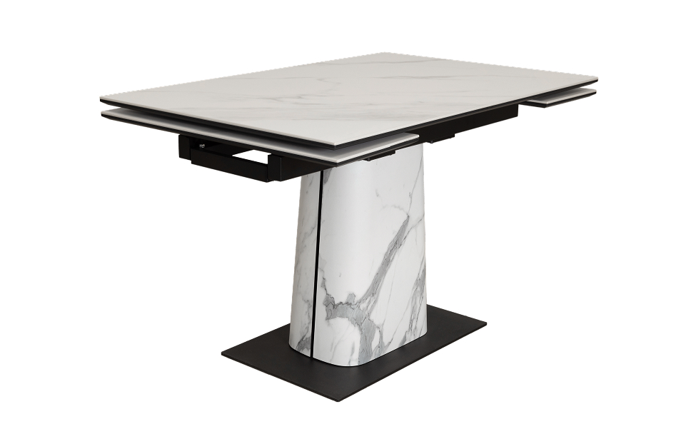 Обеденный стол с двумя торцевыми механизмами подъёма. Столешница МДФ16 в пленке ПВХ + керамика. Опора: основание металл, верх фанера (9L+HPL на выбор).