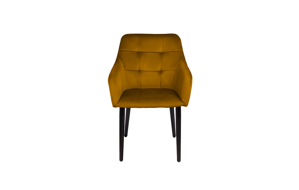 Стул-кресло Отэм прекрасно впишется в любой интерьер и комнату. Такой стул можно использовать как в качестве обеденного стула, так и в виде рабочего кресла к письменному столу. Обивка из велюра в актуальном горчичном оттенке прекрасно гармонирует с металлическими ножками черного цвета. Такие стулья украсят современные интерьеры, а также пространства в стиле эклектики.