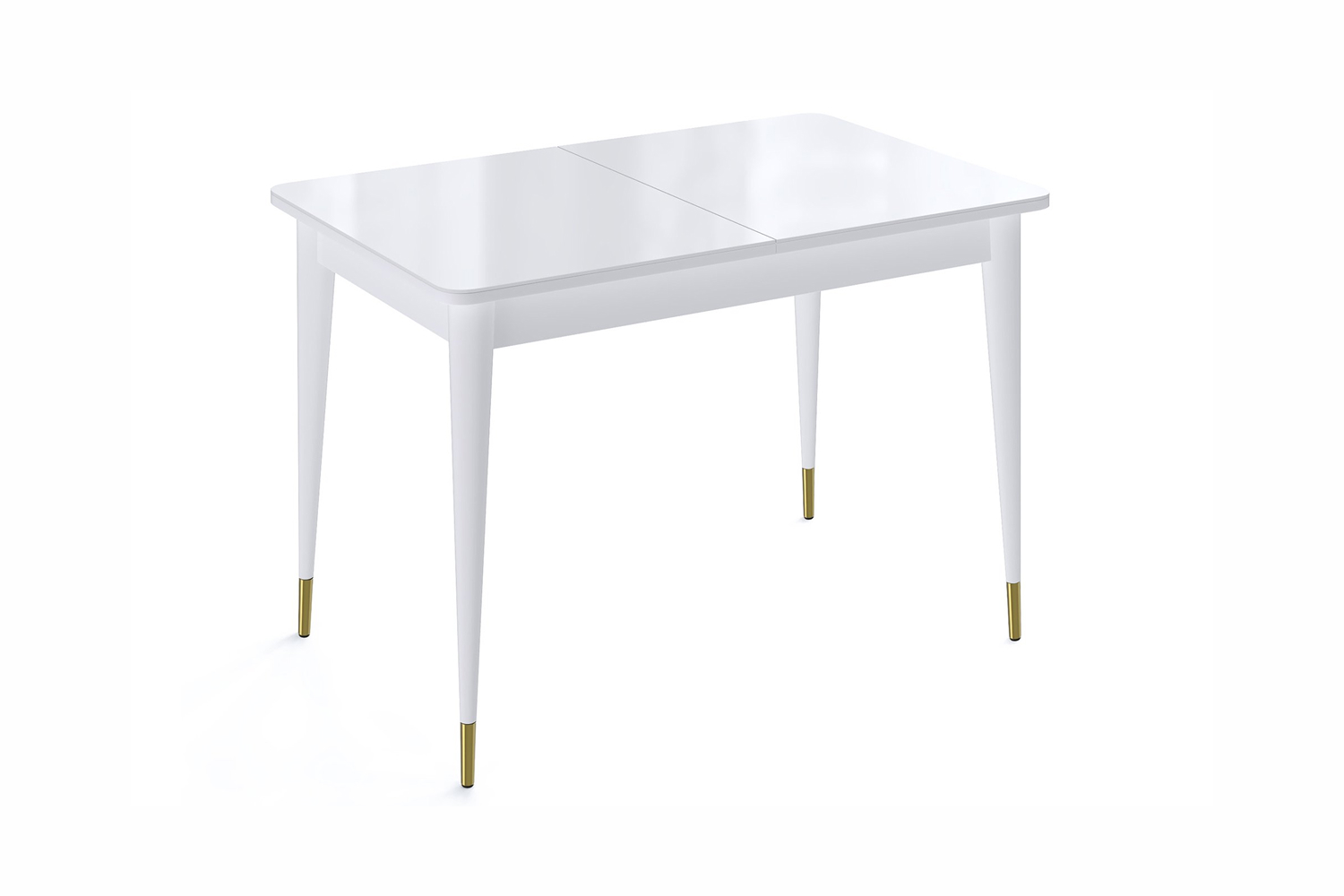Стол обеденный Мане прямоугольный раздвижной К1100 опоры белого цвета с металлическими наконечниками, столешница - стекло белый глянец.
