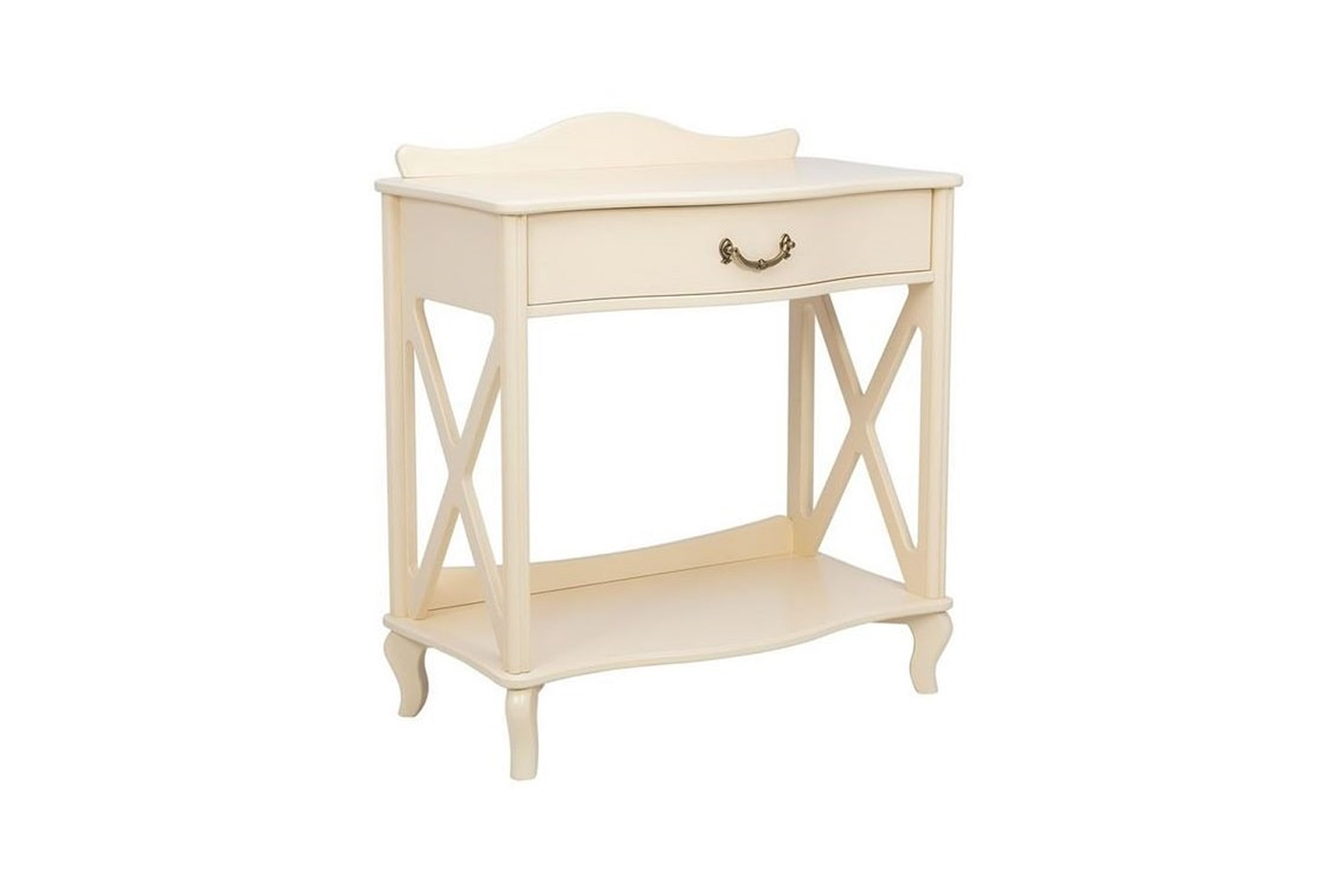 Узкий консольный столик «Джульетта» в цвете "Дуб шампань" предназначен для декоративных целей — на небольшую поверхность можно поместить вазу, сувенир, необычную статуэтку. Внешний вид изделия соответствует интерьерному стилю прованс. Бежевый оттенок, фигурная форма, изогнутые ножки, фурнитура в цвете «античная бронза» превосходно впишутся и в классическую обстановку. Основание модели выполнено из МДФ, боковины и столешница — из ЛМДФ, прочие детали изготовлены из шпона натурального ясеня. Изюминка консоли — боковые части в виде декоративных элементов фахверков. В компактном ящике с бесшумным механизмом выдвижения можно хранить любимые книги, косметику, украшения, очки, различные мелочи.