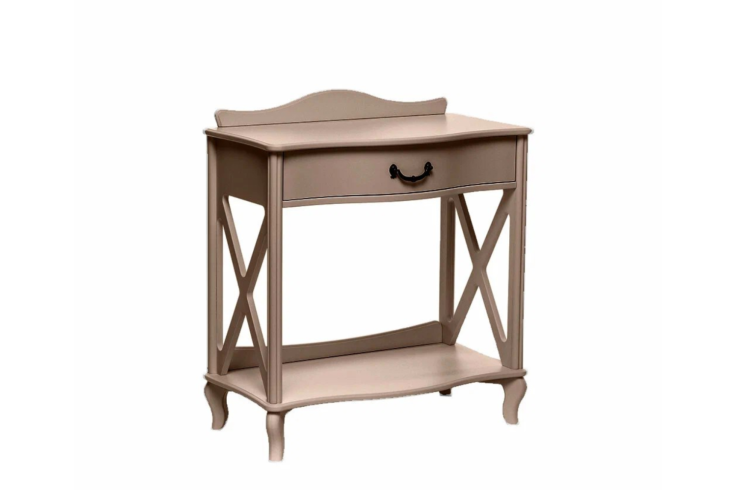 Узкий консольный столик «Джульетта» в цвете мокко предназначен для декоративных целей — на небольшую поверхность можно поместить вазу, сувенир, необычную статуэтку. Внешний вид изделия соответствует интерьерному стилю прованс. Бежевый оттенок, фигурная форма, изогнутые ножки, фурнитура в цвете «античная бронза» превосходно впишутся и в классическую обстановку. Основание модели выполнено из МДФ, боковины и столешница — из ЛМДФ, прочие детали изготовлены из шпона натурального ясеня. Изюминка консоли — боковые части в виде декоративных элементов фахверков. В компактном ящике с бесшумным механизмом выдвижения можно хранить любимые книги, косметику, украшения, очки, различные мелочи.