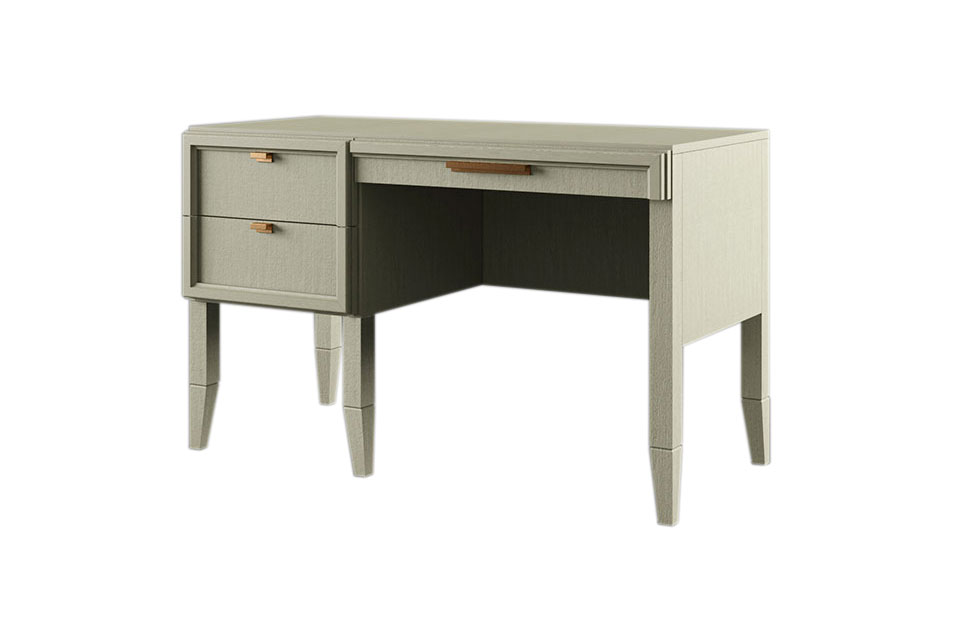 • Стол письменный однотумбовый — с двумя крайними выдвижными ящиками и одним центральным выдвижным ящиком;